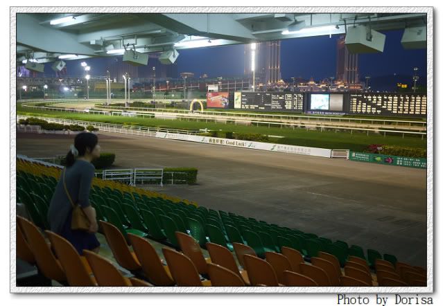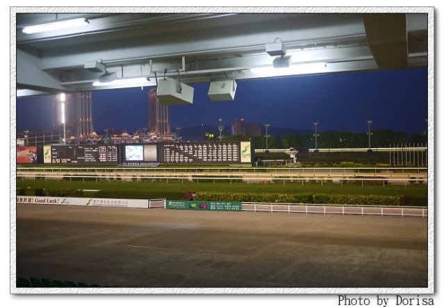 走了好一段路加上問路人, 從白天走到晚上, 走超多路的第一天, 終於抵達賽馬場, 正式名稱是 "澳門賽馬會賽事大樓"...