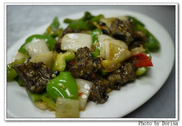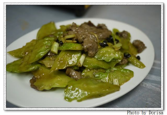 "紫蘿炒牛肉" ( 紫蘿 = 苦瓜 )