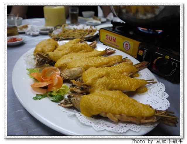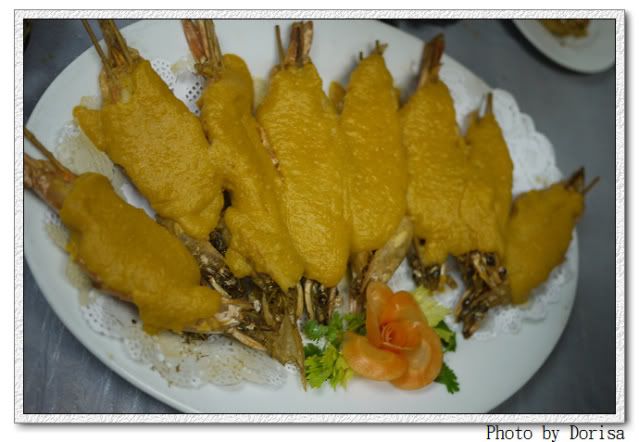 下面是大明蝦, 上面裹的那一層是鹹鴨蛋及蝦卵, 超棒的一道菜 ( 價錢也很驚人就是