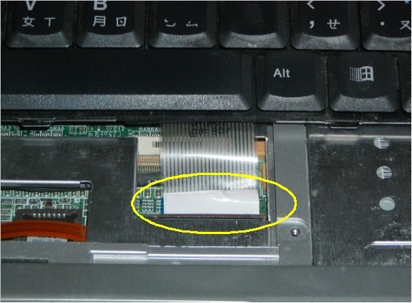 等我發現並改回來時, 原本排線的地方, 已經稍微有點被我折到了, 因此裝回來後, 只剩下 56TYGHBN 這幾個鍵能用= =, 尷尬了, 光這幾個鍵連關個機都沒辦法... 再進一步檢查, 確認是排線接觸不良, 用手輔助壓一下排線, 嗯, 果然鍵盤回到應有的作用 ( 不然這筆電型號這麼舊, 上拍賣網找了一下, 我咧, 要 1400 啊! 景氣這麼糟, 怎麼買的下手... )