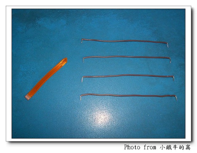 仔細看了一下, 排線上面的線路有 4 條, 所以我想了個方法, 看看能不能 DIY 自已救救看... 因為排線實在是太細了, 沒辦法焊. 所以我想到的方式是, 在斷裂處的線路, 用針各扎一個洞, 然後將單心線塞入, 不就可以連接了.
